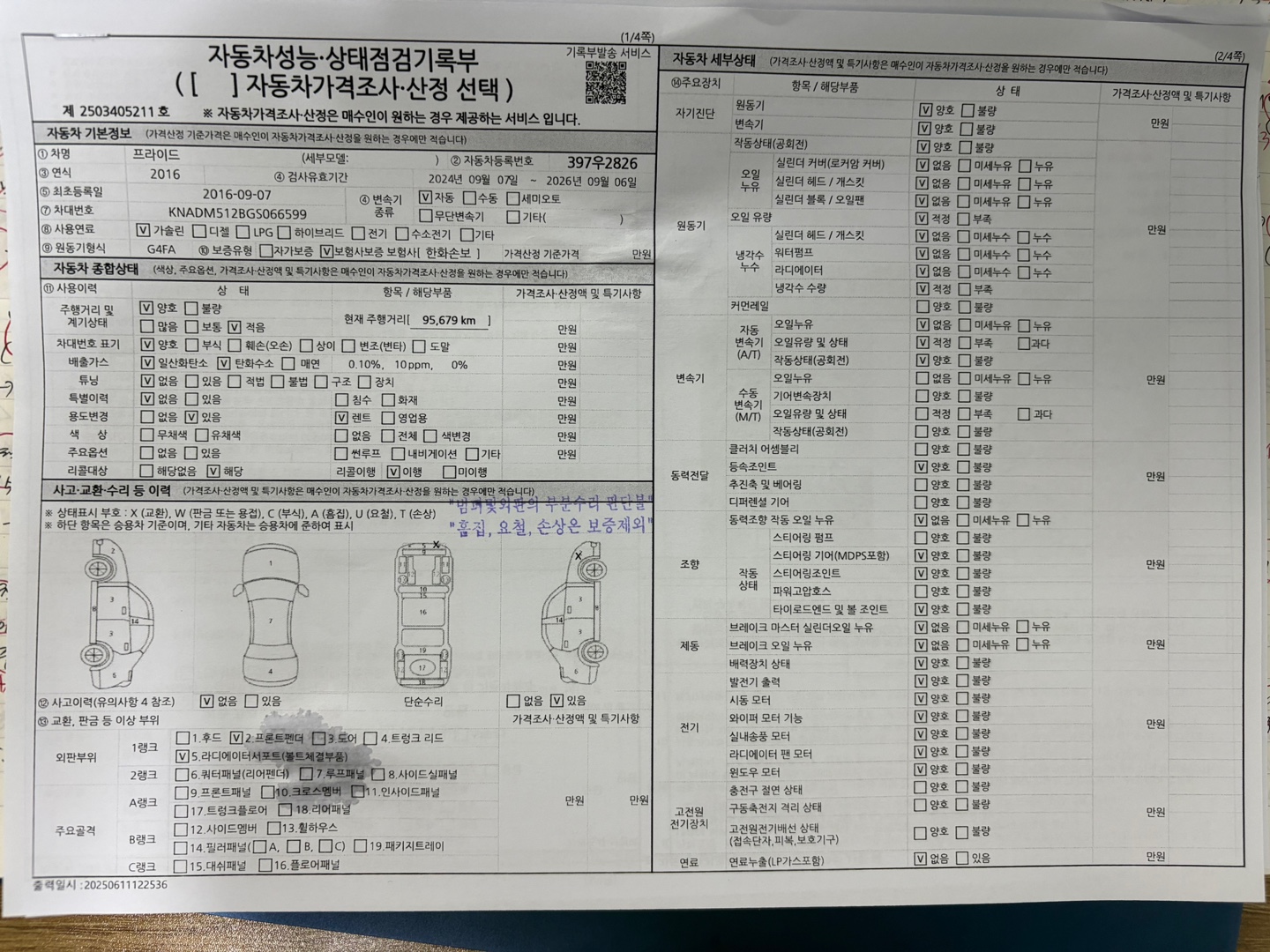 그외 주요부위 손상 일절 없어 무사고 진단 받았습니다